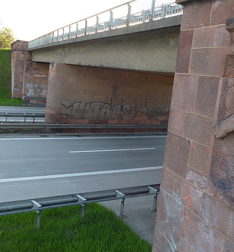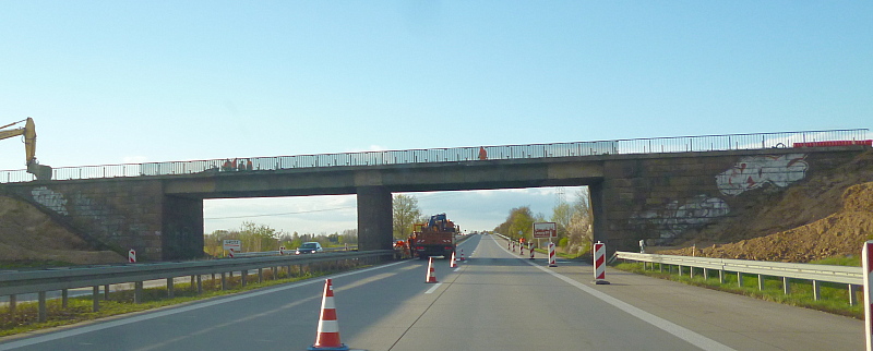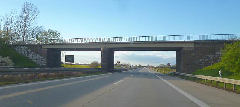 Die Überführung der ehemaligen Reichsstraße 6. Der Überbau ist deutlich breiter als bei vergleichbaren Bauwerken, auch die Widerlager sind breiter gehalten und bilden auf beiden Seiten je zwei Aussichtspunkte auf die Autobahn. Auf der südlichen Seite, von Dresden kommend, befindet sich das Stadtwappen von Leipzig.
