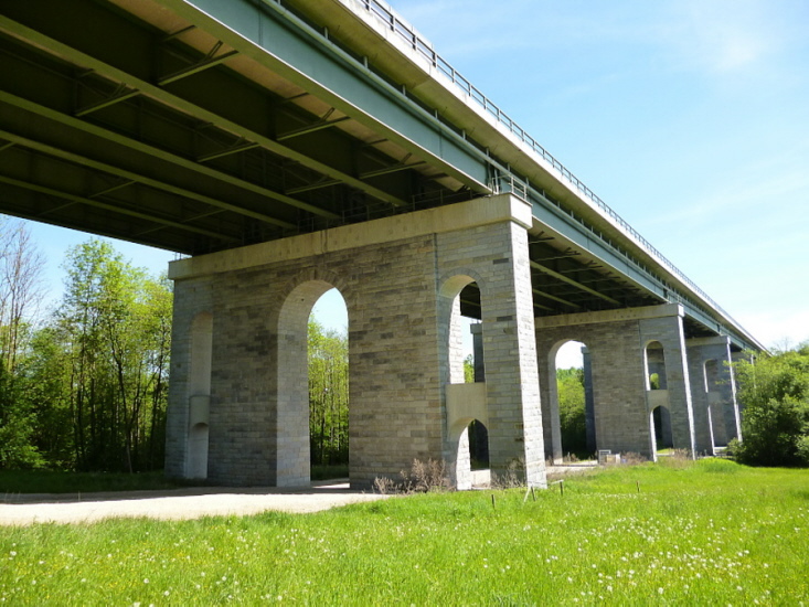 Ursprünglich war auch hier ein Stahlüberbau für beide Richtungsfahrbahnen geplant.