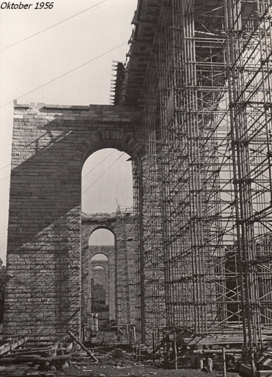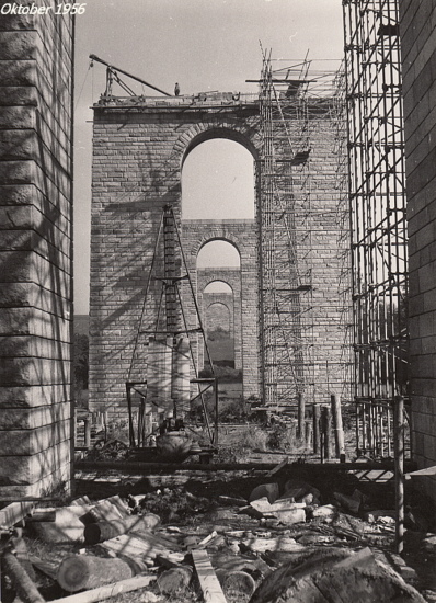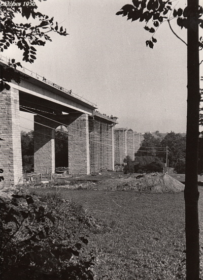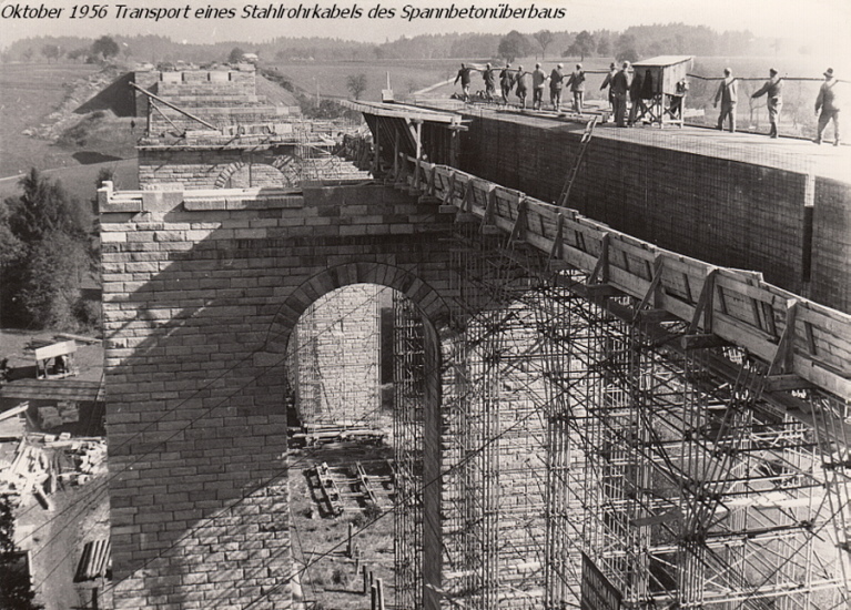 1956 wurden die Arbeiten an dem Bauwerk wieder aufgenommen. Der Stahlüberbau wurde aber nun durch zwei Spannbetontragwerke ersetzt. Diese wurden in der damals neu entwickelten Spanngliedkopplung hergestellt und galten damals als Pionierleistung im Brückenbau. 1957 konnte das Bauwerk fertiggestellt werden.