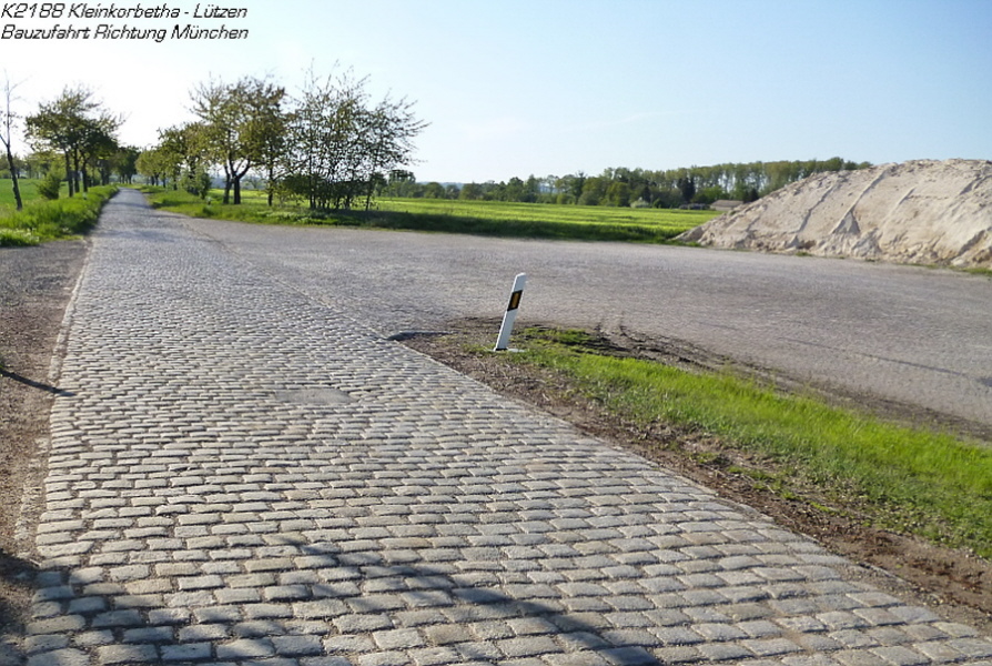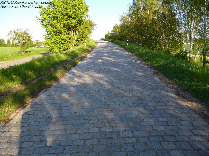 An der K2188 Kleinkorbetha - Lützen gibt es noch eine teilweise erhaltene Bauzufahrt von 1935 und erhalten geblieben sind ebenfalls die Rampen zum Überführungsbauwerk.