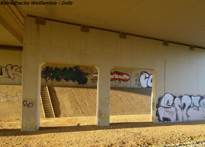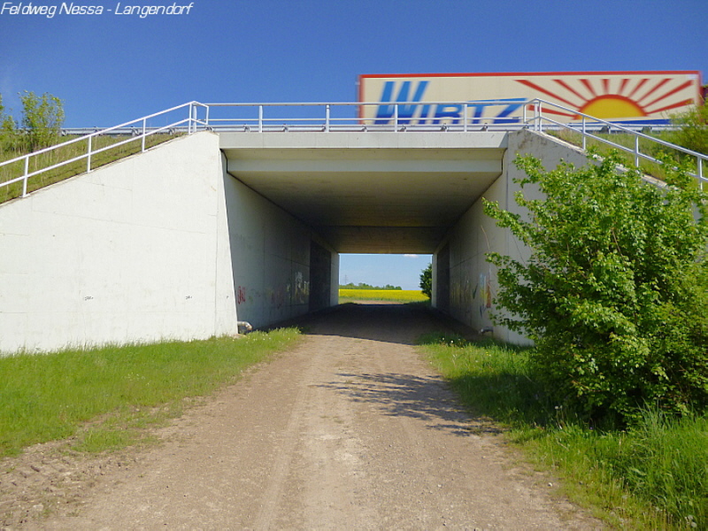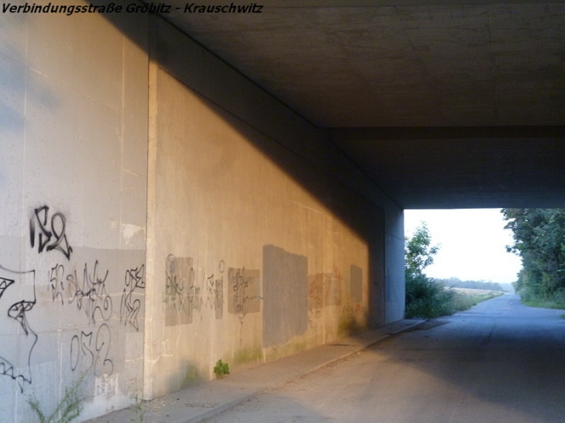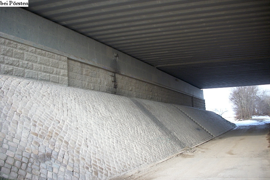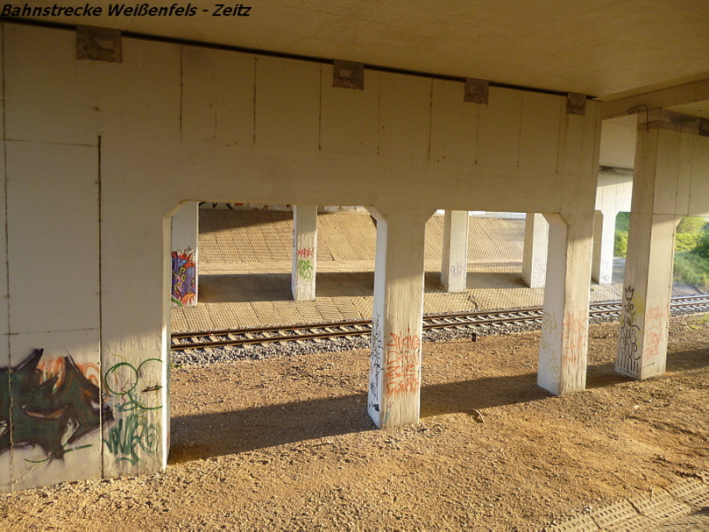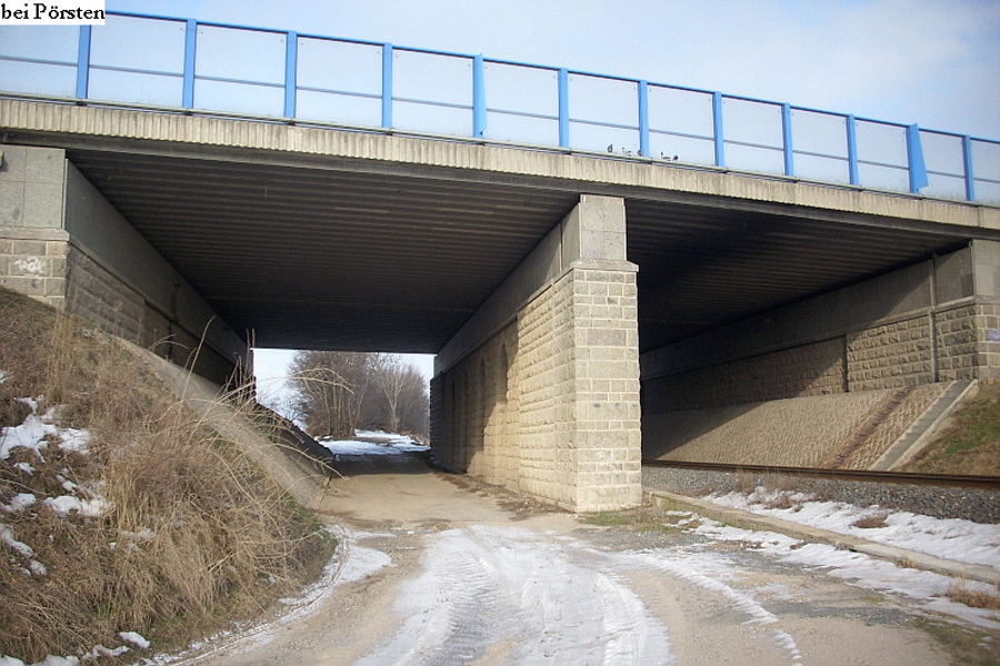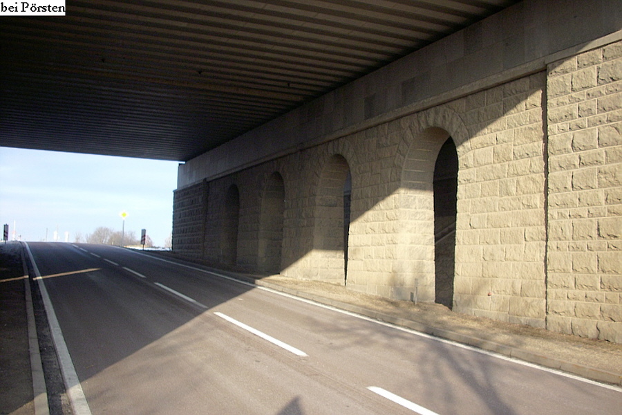 Im Weiteren Verlauf sind bei einigen Unterführungsbauwerken unter der Richtungsfahrbahn Berlin die Widerlager, bei einer Bahnunterführung auch die Stützpfeiler, erhalten.