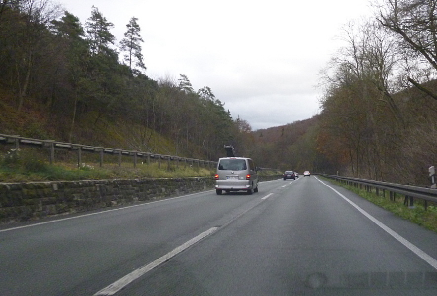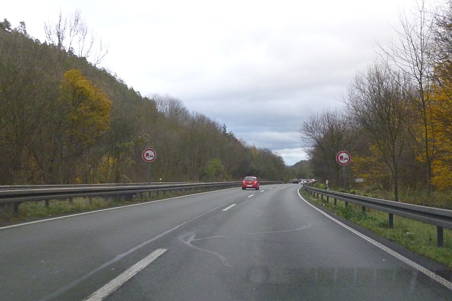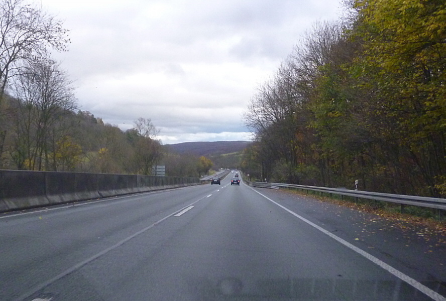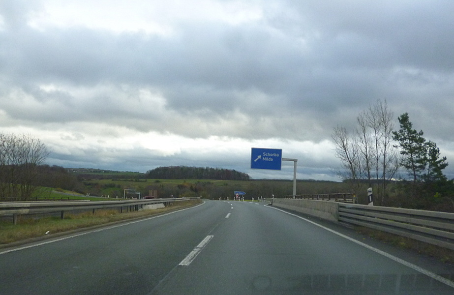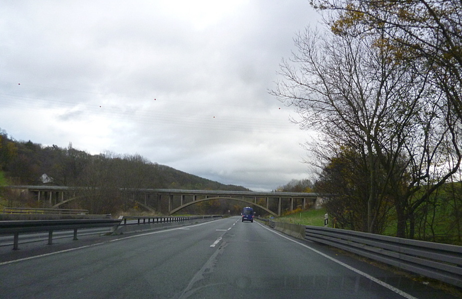 Die 1939 eröffnete Trasse wurde bis Ende 2015 zurückgebaut da hier in diesem Bereich ein Ausbau auf drei Fahrspuren und je einem Standstreifen nicht möglich war.Hier trassierte man die Strecke durch das enge Tal der Leutra und stellte die Orchideenwiesen unter Naturschutz. Diese Fotoserie zeigt die Autobahn vom Schorbaer Berg durch das Leutratal und deren Bauwerke zwischen Schorba und Leutra.
