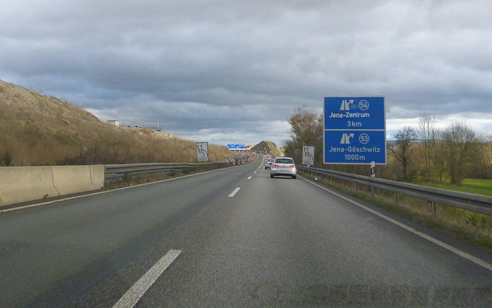 Mitte November 2014 wurde der letzte noch verbliebene vierbahnige Abschnitt der A4 in Thüringen zwischen der AS Magdala und Jena - Göschwitz für den Verkehr gesperrt. Absofort rollt der Verkehr nun durch den Jagtbergtunnel und eine neue Trasse in diesem Bereich.