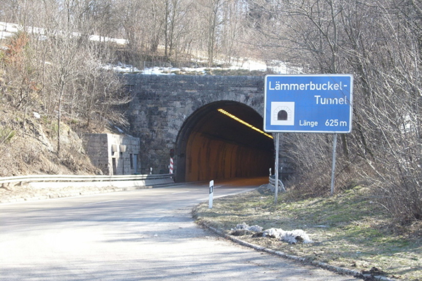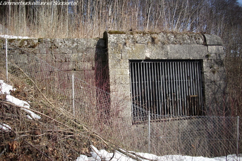 Der Lämmerbuckeltunnel erhält anschließend an beiden Portalen große Stahltore und wurde von1943 bis 1945 von der Rüstungsindustrie genutzt.