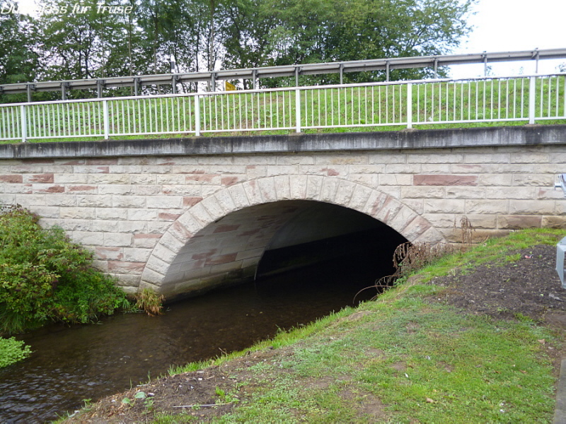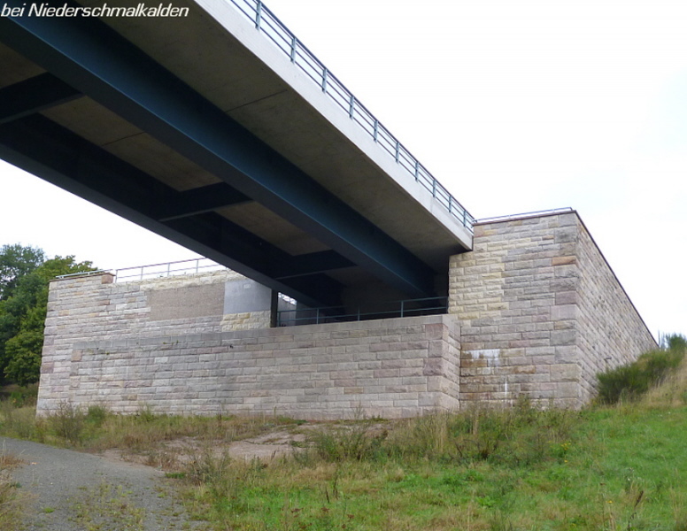 Auch das nördliche Widerlager der Talbrücke konnte in das neue Bauwerk integriert werden. Die Verkehrsfreigabe erfolgte im Sommer 2014.
