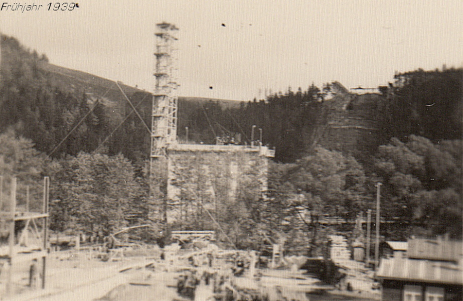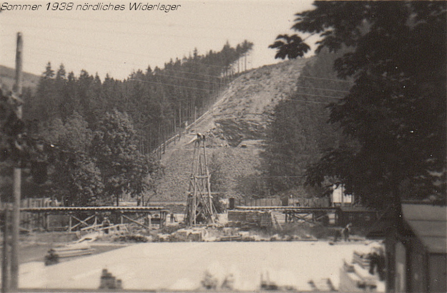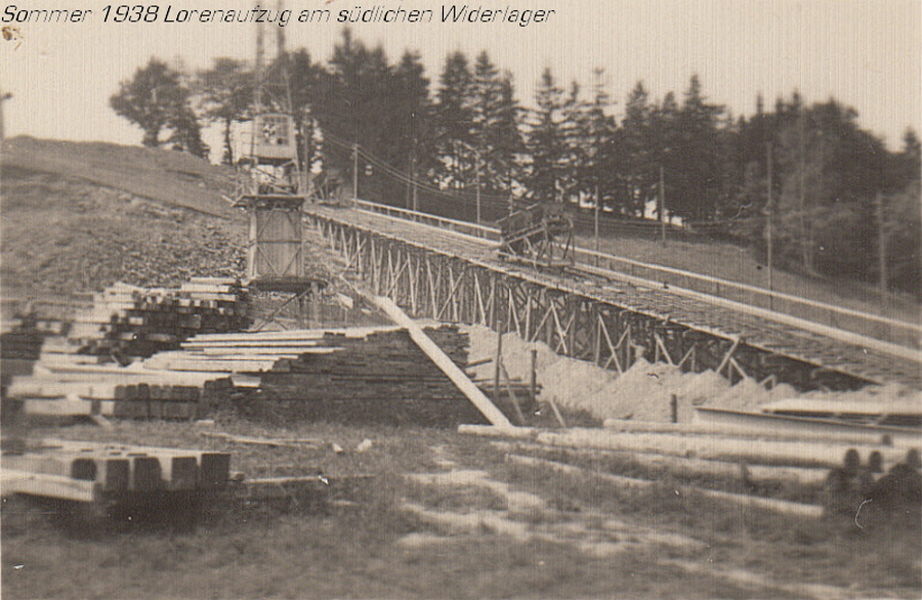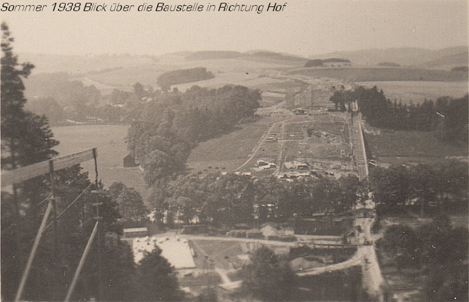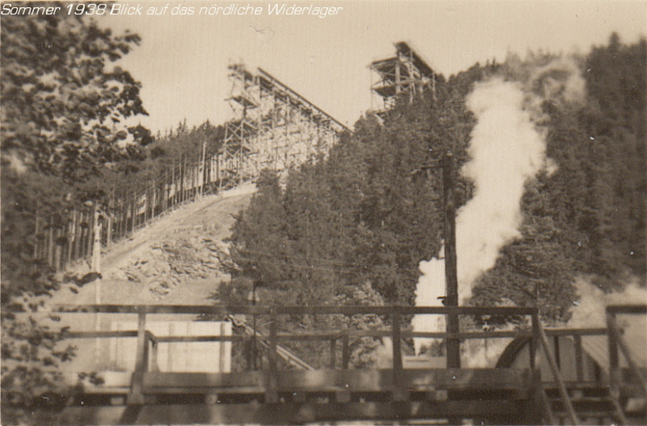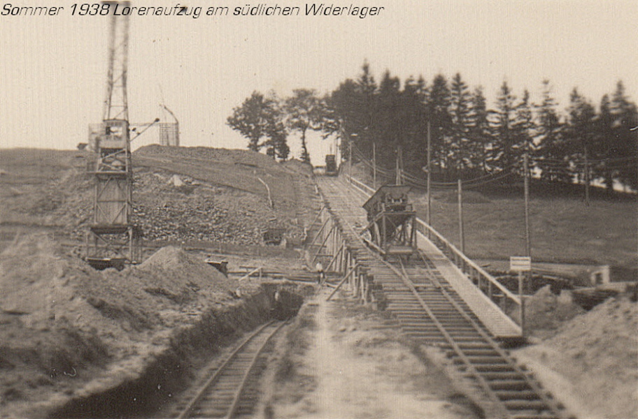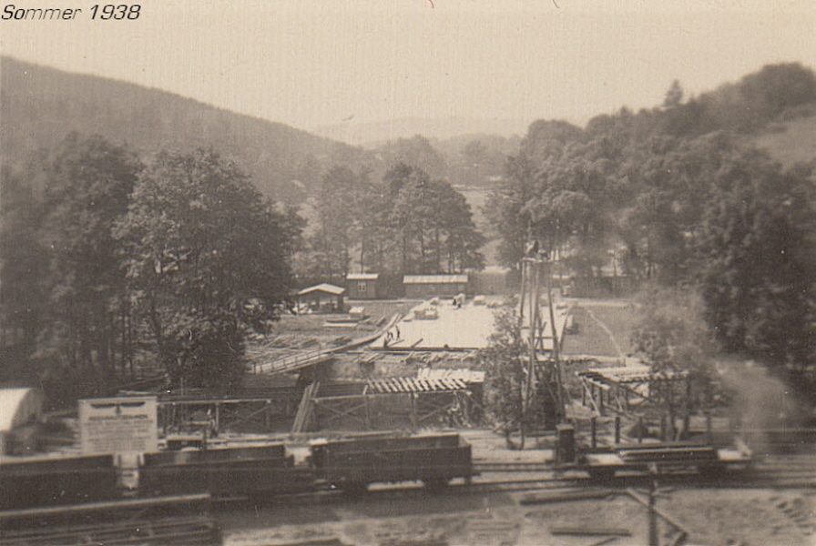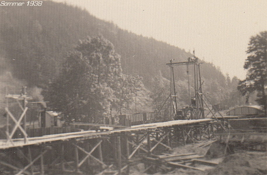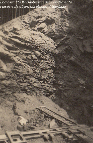 Bereits im Sommer 1938 nehmen die Bauvorbereitungen im Elstertal konkrete Formen an. Zu diesem Zeitpunkt wurden neben der Einrichtung der Baustelle und des Baulagers auch schon mit dem Ausheben der Fundamente begonnen. Offiziell wird der Baubeginn für die Elstertalbrücke jedoch zum Jahresende 1938 angegeben. Mit ihrer Gesamtlänge von 505m und einer maximalen Höhe von 60m über der Weissen Elster sollte sie die Grösste selbstragende Steinbogenbrücke in Europa werden.