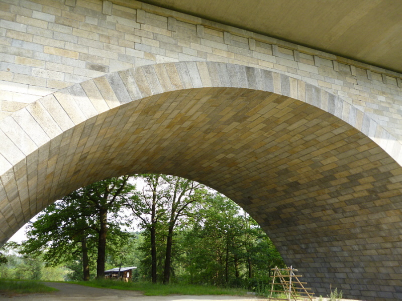 Aber dabei wurde Unterhalb der Brücke zur Überraschung aller der alte Lagerplatz für die Steinquader wieder entdeckt. Diese Quader waren noch fast alle vorhanden und wurden für den Weiterbau neu katalogisiert und konnten nun an ihrer zugedachten Stelle eingebaut werden.