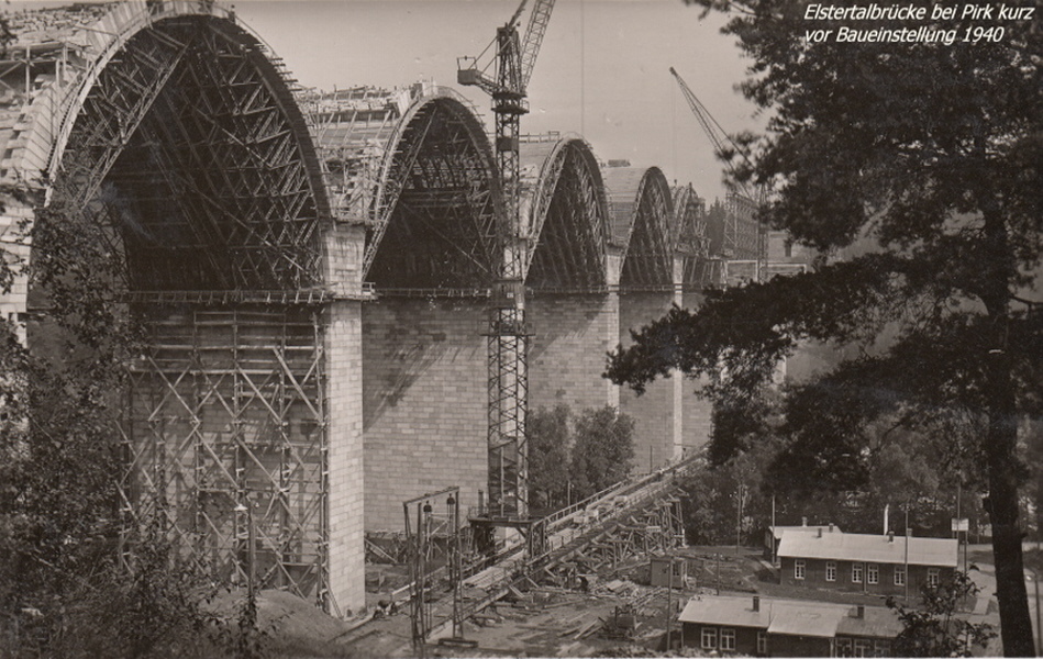 Somit ruhten auch ab 1940, nur einige Monate vor der geplanten Verkehrsübergabe, die Arbeiten an der Elstertalbrücke.