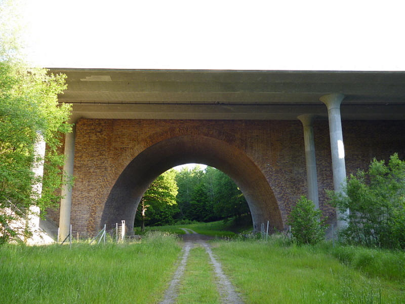 Beim Ausbau der Strecke 1997/98 wurde auf der östlichen Seite eine Balkenbrücke für die Richtungsfahrbahn Berlin angefügt. Diese ermöglicht mit ihren dünnen Pfeilern und weit zurückgezogenen Widerlagern einen fast ungestörten Blick auf die Ostseite das denkmalgeschützten Bauwerks.
