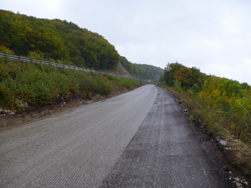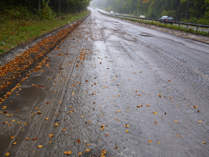 Ursprünglich war der Fahrbahnbelag zwischen den AS Altmühltal und der AS Denkendorf in graublauen Basalt ausgeführt. Bei größeren Steigungsstrecken wie hier am Kindinger Berg erhoffte man sich durch Ausführung der Fahrbahn als Kleinpflasterstraße eine höhere Griffigkeit zu erreichen. Die Zwischenräume zwischen den Steinen wurden noch zusätzlich mit Asphalt verfüllt. Aber mit zunehmender Verkehrsdichte nach den Kriegsjahren entwickelten sich solche Streckenabschnitte schnell zu Unfallschwerpunkten vor allen bei Nässe. Oft konnten auch diese Fahrbahnen die Brems- und Fliehkäfte nicht standhalten und es entstanden häufig Verwerfungen die übermäßig oft wieder entfernt werden mussten.