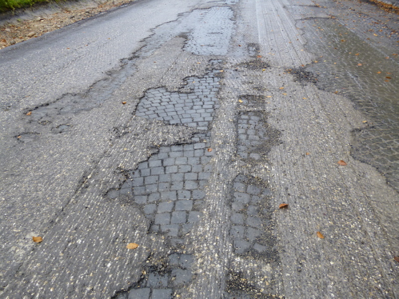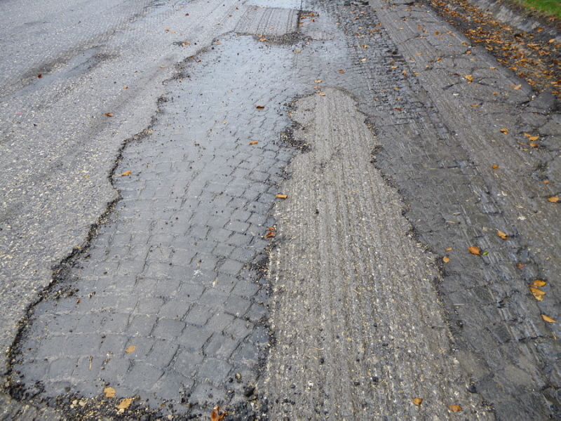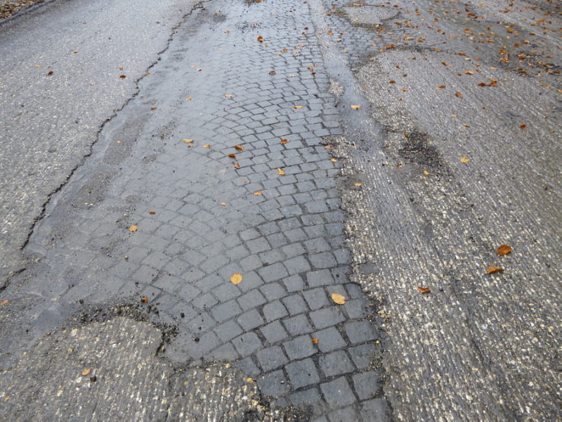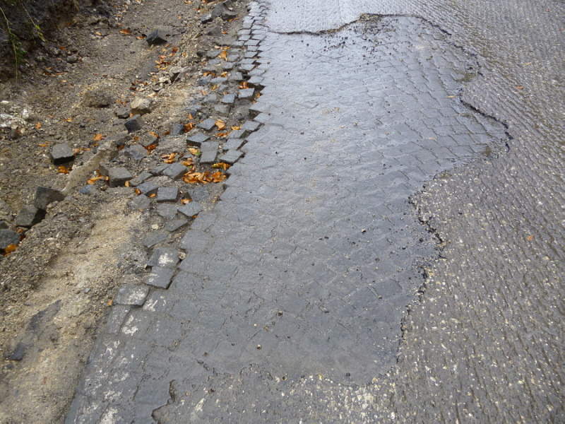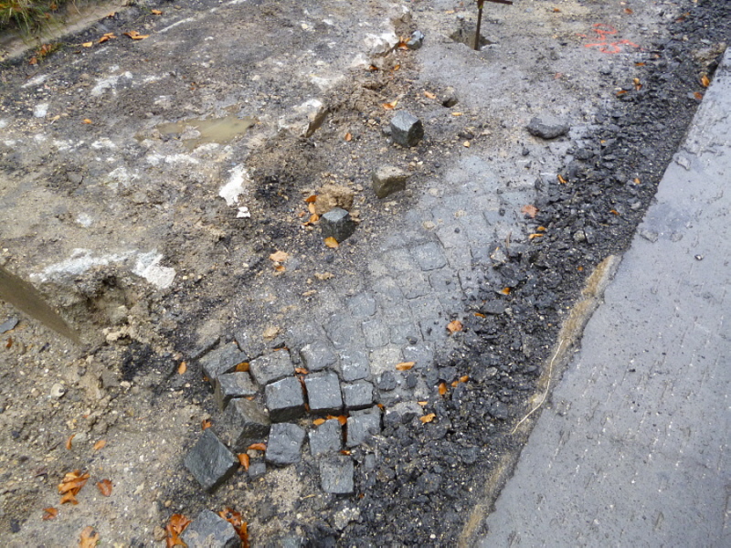 Nach dem Abfräsen des Fahrbahnbelages kam an einigen Stellen wieder das Kleinpflaster aus dem Jahr 1938 zum vorschein.