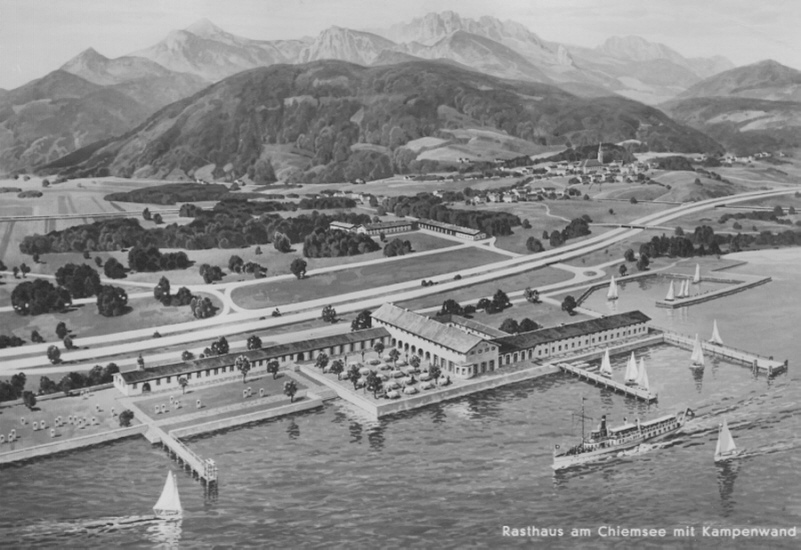 Rasthaus mit Blick auf Herren- und Fraueninsel Foto: Kretmann und Stampfl Prien