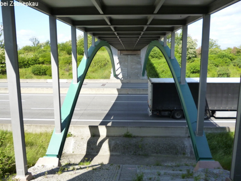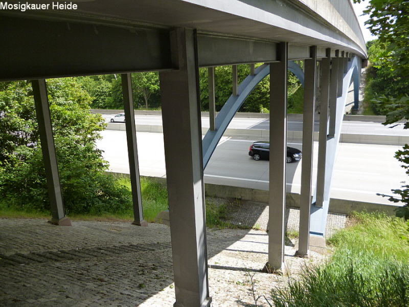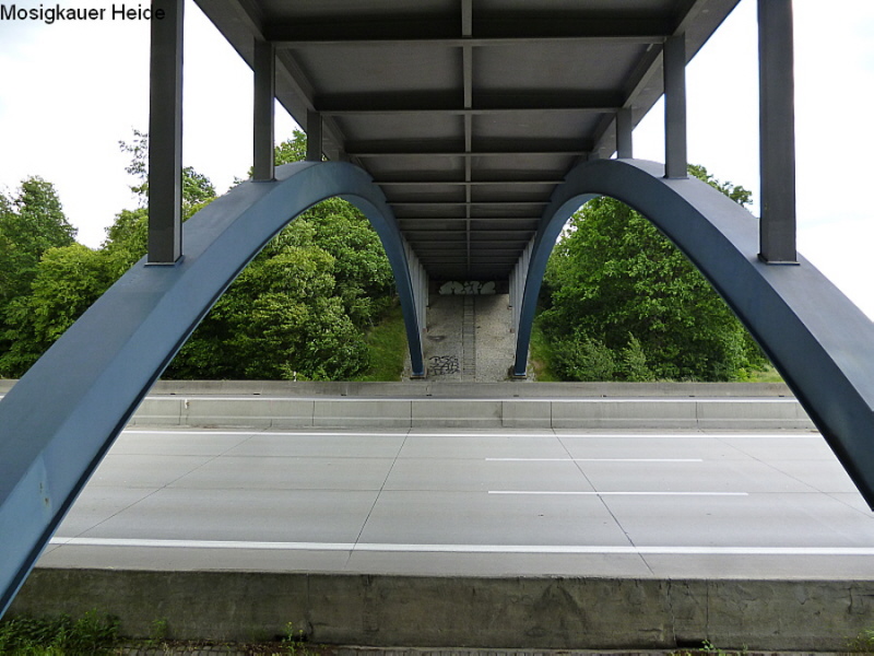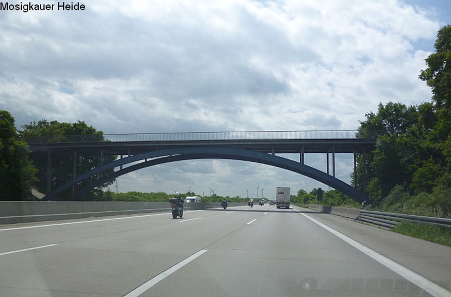 Im November 1938 wird die Strecke zwischen Halle/Leipzig und Berlin für den Verkehr freigegeben und im Januar 1939 offiziell die Rekordstrecke zwischen den AS Bitterfeld und Dessau - Süd mit der "Ersten Rekordwoche" eröffnet. Die Stahlbrücken wurden überraschend im typischen Bauhausstil errichtet, der im Dritten Reich bereits 1933 als entartet, jüdisch oder undeutsch galt.