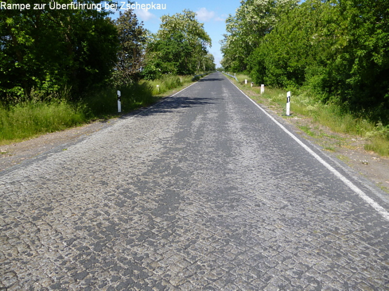 Die Landstraße zwischen Rödgen und Thalheim wurde im Zuge des Reichsautobahnbaus ebenfalls als Kleinpflasterstraße ausgeführt. Auch an der Rampe der Überführung bei Zschepkau ist unter dem dünnen Asphaltbelag teilweise das Kleinpflaster zu erkennen. Hier stehen auch noch einige Granitblocksteine die einst als Straßenbegrenzung dienten. Auch bei der Überführung in der Mosigkauer Heide sind diese Steine noch zu finden.
