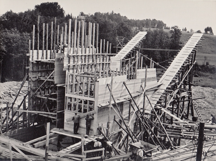 04.06.1937 Leergerüst der südlichen Brücke in Bau