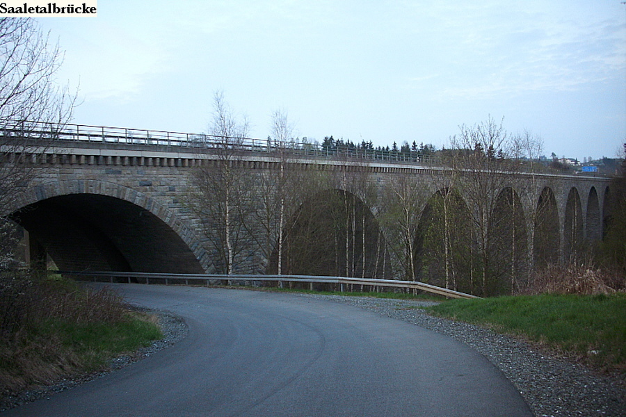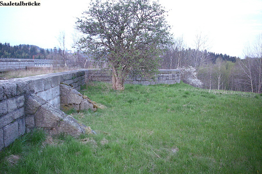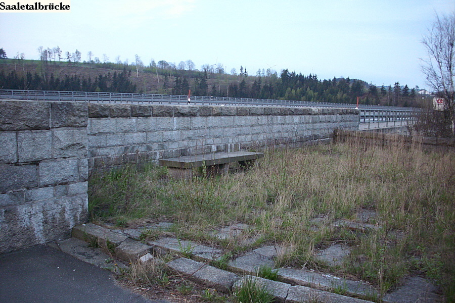In den letzten Kriegstagen im April 1945 wurden durch die Wehrmacht die Brücke auf der südlichen Seite gesprengt. Da aber die Saale die Grenze zwischen der amerikanischen und russischen Besatzungszone und später zwischen der BRD und DDR bildete begann der Wiederaufbau auf drängen der Bundesregierung 1964. Mußte doch der Verkehr von und nach Berlin über die heutige A72 bzw. ab 1952 über die B2 Töpen - Schleiz geleitet werden. Der Wiederaufbau konnte im Dezember 1966 beendet werden.
