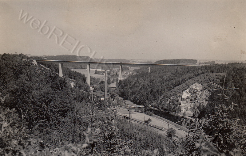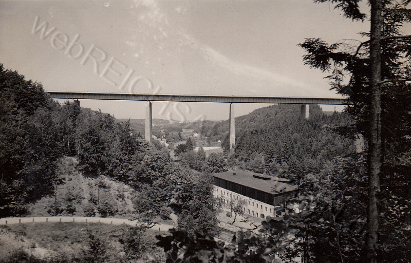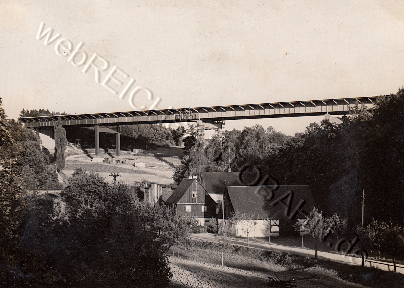 Ab 1952 wurde mit dem Wiederaufbau einer Brücke über das Tal begonnen. Durch internationale wirtschaftliche Sanktionen der 1949 gegründeten DDR und der fast 80 prozentigen Demontage der Stahlproduktion durch die Sowjetunion musste der Neubau der Brücke als Steinbogenbrücke erfolgen. Beide Widerlager wurden dabei weiter verwendet. Ende Dezember 1953 wurde für die Richtungsfahrbahn Erfurt dem Verkehr übergeben. 1954 wurde zwar noch mit dem Bau des Bauwerkes für die Richtungsfahrbahn Chemnitz begonnen aber nach einigen Monaten komplett eingestellt.